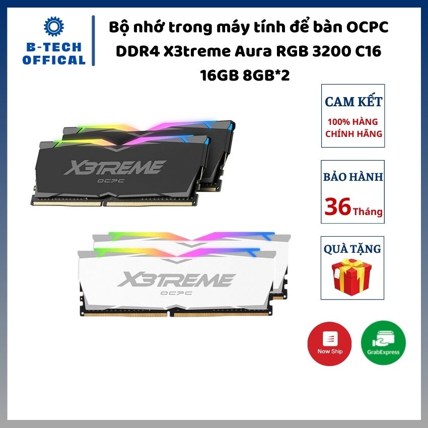 Máy tính & Laptop > Linh Kiện Máy Tính > Ram Máy Tính || Bộ nhớ trong máy tính để bàn OCPC DDR4 X3treme Aura RGB 3200 C16 16GB 8GB*2 - Hàng chính hãng bảo hành 36 thángCòn hàng