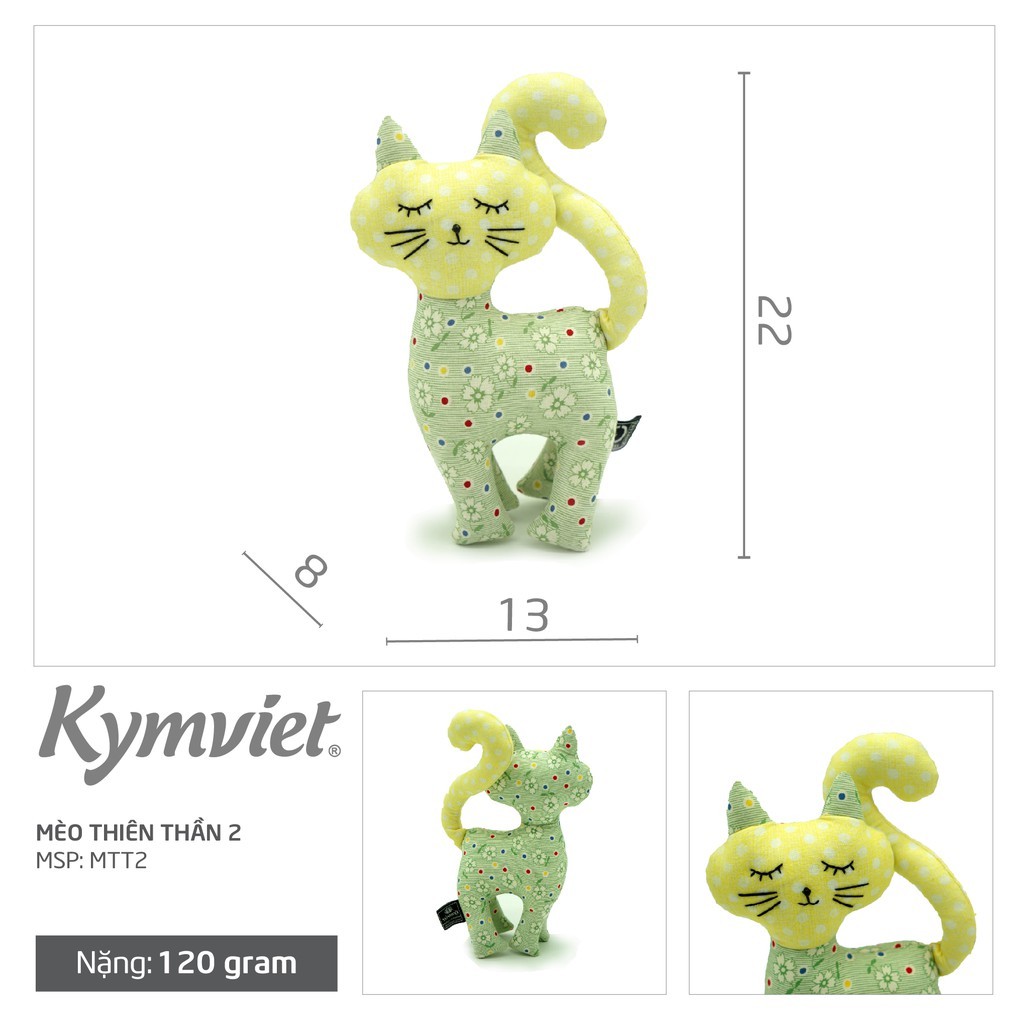 Đồ Chơi Nhồi Bông Hình Mèo Thiên Thần 1 Kymviet 100% Handmade Cotton làm Quà tặng, Trang trí, Đồ chơi trẻ em mang đậm nét truyền thống, gửi gắm như một thiên thần mang tới những điều may mắn cho tất cả mọi người.1. Thông tin của sản phẩm đồ chơi nhồi bông hình mèo thiên thần 1: