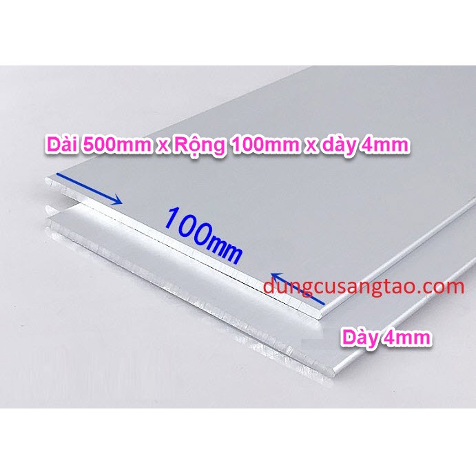 - Nhôm dày 6063 dày 4mm: Dài x Rộng = 500x100mm, nặng 0.53kg