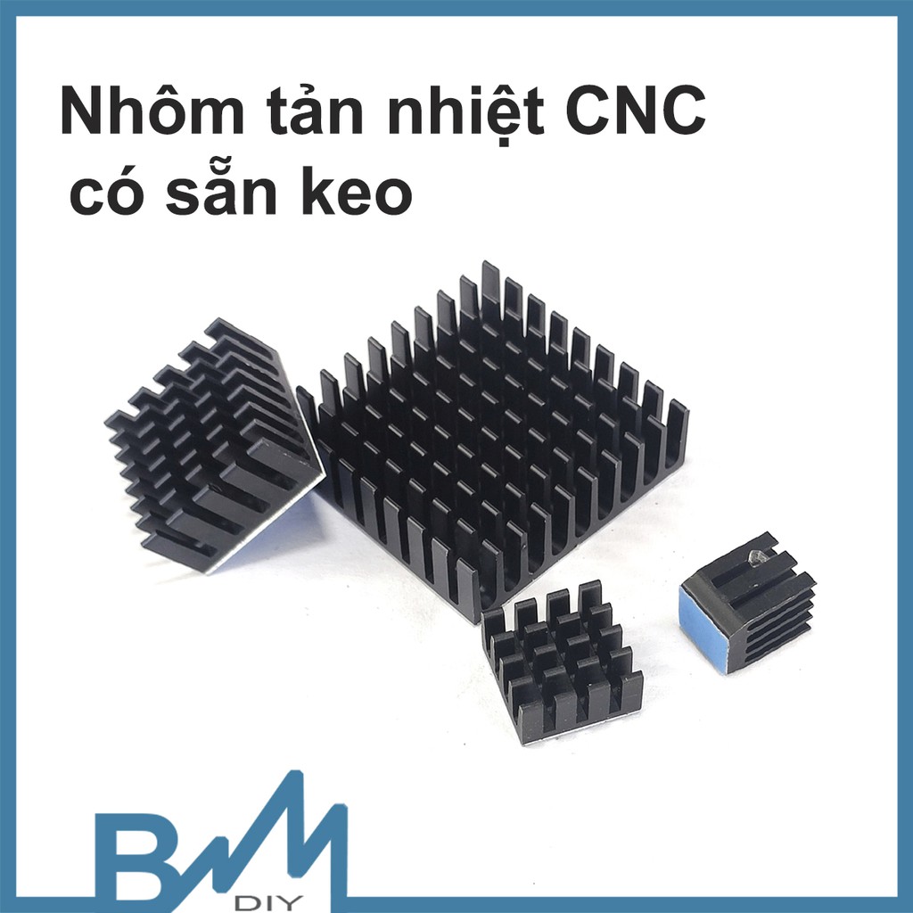 Nhôm tản nhiệt nhiều cỡ, gắn lên chip công suất để giải nhiệt nhanh chóng, tăng hiệu suất và độ bền cho bộ mạch của anh em.Anh em lưu ý có 2 loại màu đen và màu nguyên bản, loại màu đen đã có sẵn keo dẫn nhiệt, loại màu nguyên bản không có keo.