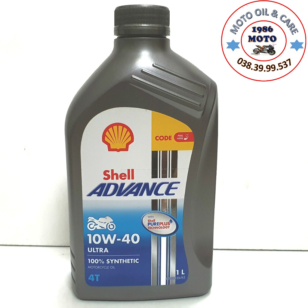 Nhớt 1L Shell Advance Ultra 10W40, tổng hợp 100% THAILAND - dầu nhớt cho xe máy, xe côn tay, exciter, winner, raider