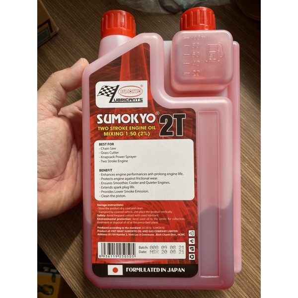 Nhà cửa & Đời sống > Làm vườn > Máy cắt cỏ, dụng cụ cắt cỏ || Nhớt 2T cho máy phát điện, máy cưa, máy cắt cỏ... chai 1L SUMOKYOCòn hàng