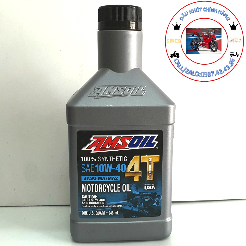 NHỚT AMSOIL 10W40 4T PERFORMANCE - DÀNH CHO XE SỐAmsoil 10W40 Performance sản phẩm nhớt chuyên dụng dành cho xe máy đến từ thương hiệu dầu nhớt Amsoil Amsoil 10W40 Performance được đánh giá là dòng nhớt an toàn, ổn định cho xe máy kể cả xe moto, PKL.