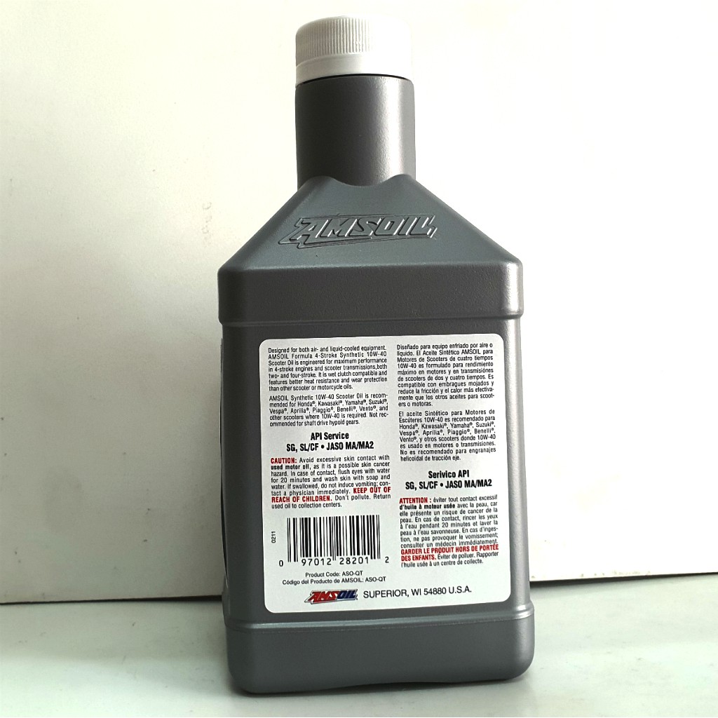 NHỚT AMSOIL 10W40 SYNTHETIC SCOOTER - DÀNH CHO XE GANhớt Amsoil 10W40 Synthetic Scooter giúp động cơ xe tay ga của bạn vận hành một cách ổn định, giảm thiểu khả năng mài mòn chi tiết trong quá trình vận hành, hạn chế bụi bẩn, mạt sắt bám trên động cơ, giúp cho nhiệt độ động cơ luôn ổn định dù trong tình trạng vận hành ở cường độ cao