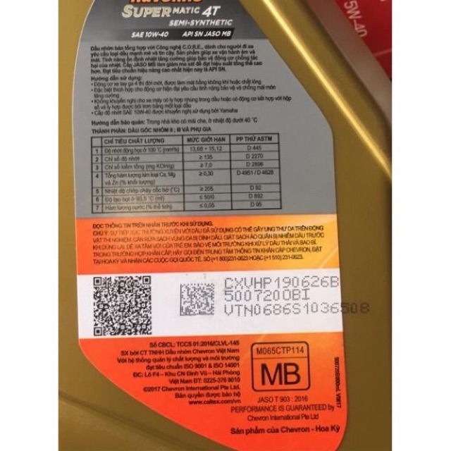 Đạt tiêu chuẩn chất lượng API SN, giúp bảo vệ chống mài mòn tăng cường, giảm cặn rắn