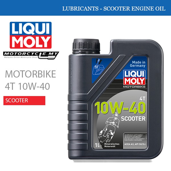 Nhớt Liqui Moly chính hãng chất lượng cao dành cho xe tay ga. Nhớt có độ bền cao, ổn định, giúp xe vận hành tối ưu, tiết kiệm nhiên liệuLiqui Moly Motorbike Scooter 10W40 là sản phẩm nhớt chuyên dụng dành cho các dòng xe tay ga hiện đại mới nhất hiện nay. Liqui Moly Motorbike Scooter 10W40 là loại nhớt xe tay ga có chất lượng rất tốt