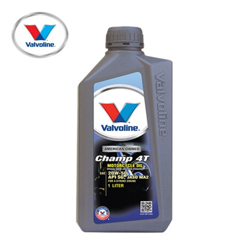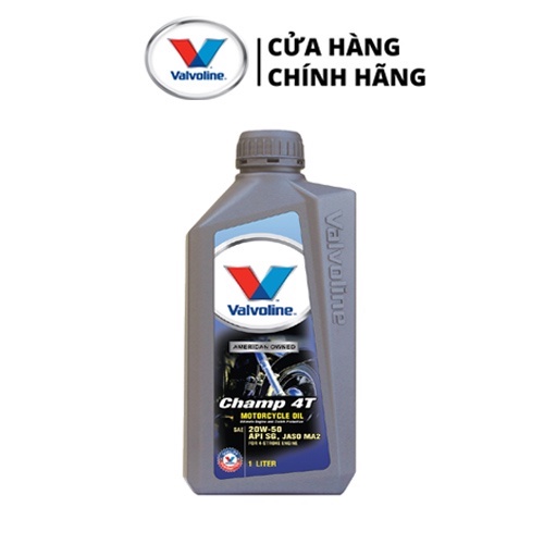 Dầu nhớt Valvoline Champ 4T 20W50 là dầu nhớt vạn năng tuyệt hảo 4T có công thức đặc biệt cung cấp sự bảo vệ suốt năm cho động cơ 4 kỳ của xe gắn máy. Sản phẩm được kết hợp từ dầu nhớt nền và các chất phụ gia bằng phương pháp hóa học cung cấp lớp màng dầu nhớt bền vững để có được sự bảo vệ tốt nhất và bôi trơn với sự bào mòn giảm thiểu trong một khoảng nhiệt độ rộng. Loại dầu nhớt này đáp ứng các yêu cầu của những nhà sản xuất xe gắn máy hàng đầu.
