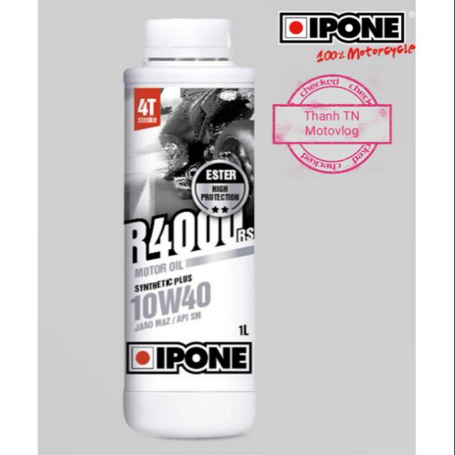 Dầu nhớt IPONE R4000 RS 10W40 là dầu nhớt dành cho xe 4T (4 thì). IPONE R4000 RS 10W40 được thiết kế giúp tối ưu cho trải nghiệm lái xe. Được sản xuất từ Dầu gốc Tổng hợp với Ester và hệ phụ gia tiên tiến giúp mang đến tính năng “Dễ sang số và bứt tốc nhanh” độc quyền. Ưu điểm: ● Dầu gốc với Ester độc quyền giúp độc cơ hoạt động tối đa công suất và bảo vệ hoàn hảo động cơ. ● Bảo vệ hộp số hoàn hảo trong điều kiện vận hành khắc nghiệt. ● Tối ưu cho điều kiện hoạt động trên đường hỗn hợp. Hướng dẫn sử dụng: Sử dụng cho các động cơ Mô-tô 4 thì như: Mô-tô thể thao, Mô-tô phân khối lớn, Xe côn tay phân khối nhỏ của các hãng như: Ducati, Honda, Yamaha, BMW, Aprilia, Kawasaki, Suzuki, Benelli, KTM… yêu cầu độ nhớt phù hợp. Công nghệ tổng hợp với Ester. Tiêu chuẩn : JASO MA2 / API SM. Sẩn phẩm tối ưu dành cho xe chạy đường hỗn hợp. Dầu nhớt và sản phẩm IPONE 100% nhập khẩu nguyên chai Chính Ngạch từ Pháp (France). IPONE là thương hiệu thành lập từ năm 1985 và là nhà sản xuất dầu nhờn hàng đầu tại Pháp. Là nhà tài trợ cho giải đua xe RED BULL MOTOGP ROOKIES CUP và MXGP CHAMPIONSHIP. Thương hiêu IPONE là thương hiệu duy nhất cung cấp đầy đủ các dòng sản phẩm dành riêng cho từng dòng xe như : MOTO phân khối lớn, xe ga, xe số tự động và các dòng xe moto chuyên dụng, xe địa hình.#ipone