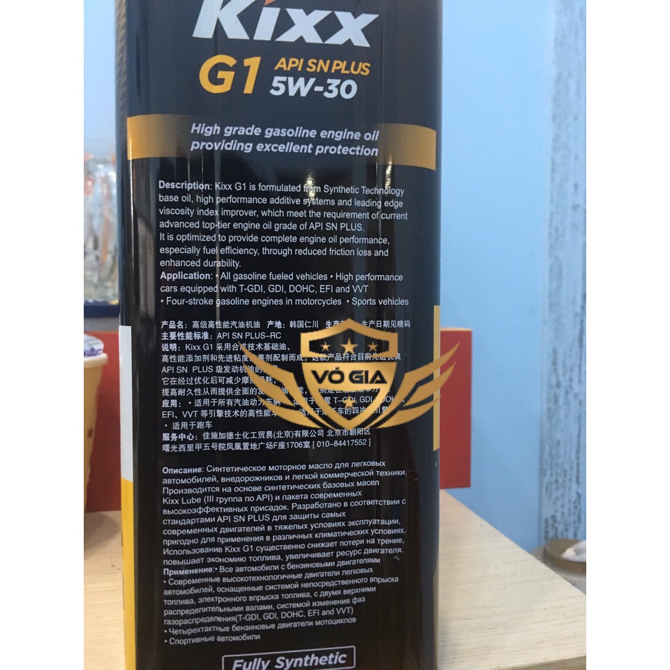 Giới thiệu Nhớt KIXX G1 PLUS SN 5W30 FULL TỔNG HỢP DÙNG CHO Ô TÔ MÁY XĂNG