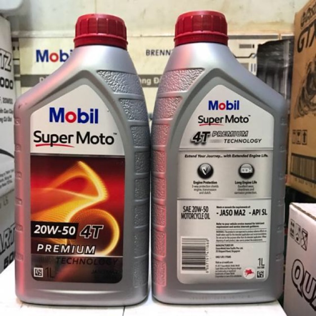 Dầu nhớt dành cho xe số động cơ 4 thì xăng.+ Dầu nhớt MOBIL SUPER MOTO 4T 20W50 được nhập khẩu từ Singapore đạt tiêu chuẩn quốc tế API SL và JASO MA2