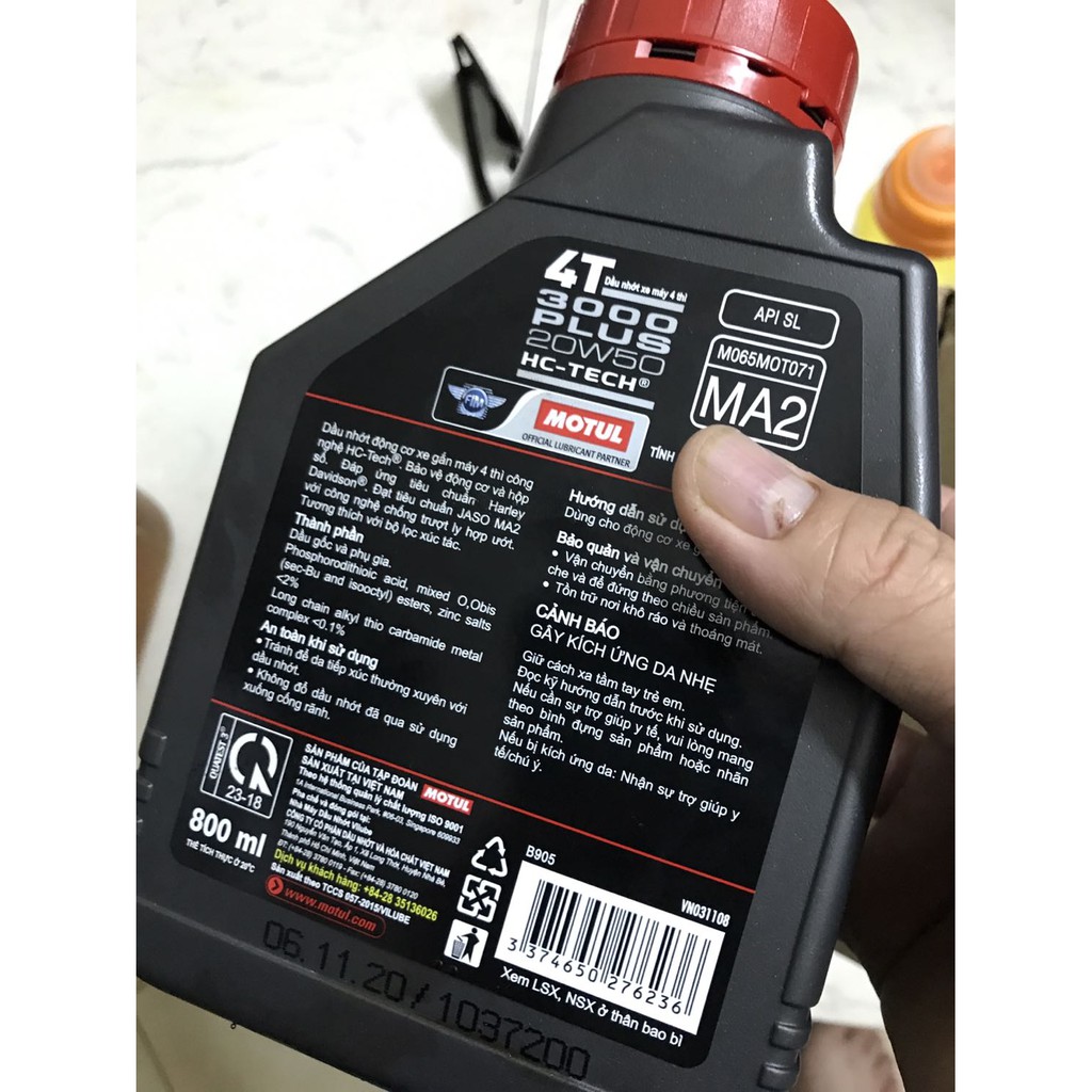 Nhớt Motul 3000 Plus 4T 20w50 800ml dành cho xe số, tay côn - Tặng phễu thay nhớt