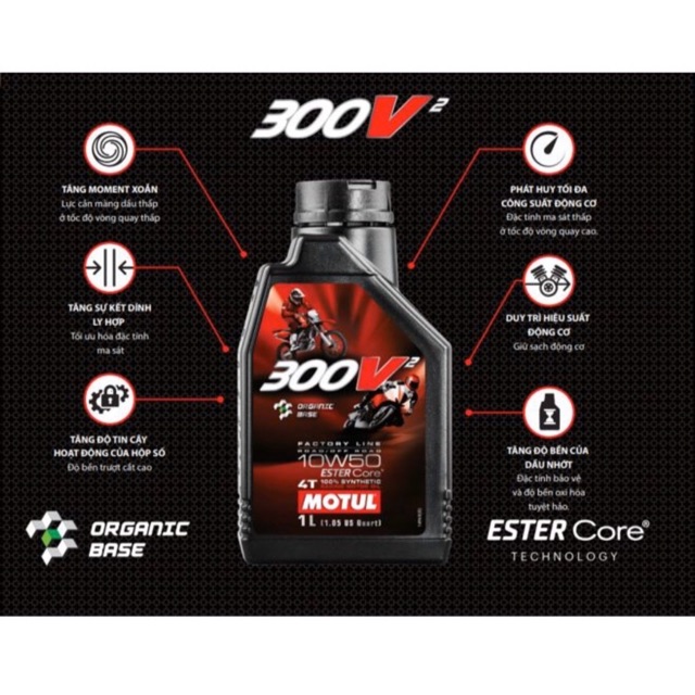NHỚT MOTUL 300v2 hàng nhập khẩu,nhớt tổng hộp xe số ,xe mô tô PKL,Motul 300v2 fActory Line 10ư50 1Lít