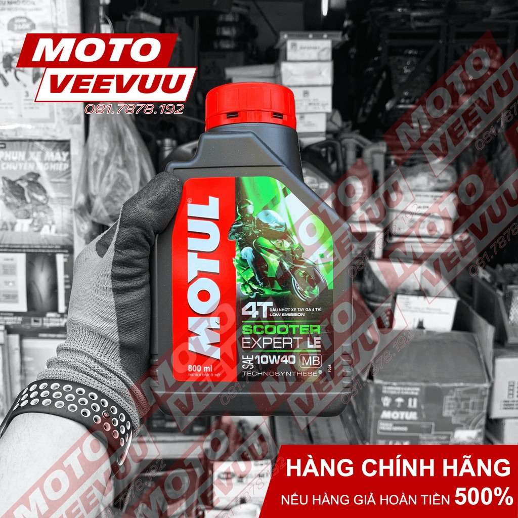 Nhớt Motul Scooter Expert LE 10W40 800ml dùng cho các loại xe : Air Blade Fi SH Mode SH 125/150i Lead 125 FiVision Fi PCX 125 Nouvo SX Nouvo Fi 2015 Luvias 125 Impulse 125 FiHayate 125 Vespa Lx Elizabeth Click 125 Nouvo LX 135 Dylan Ps Nozza...
