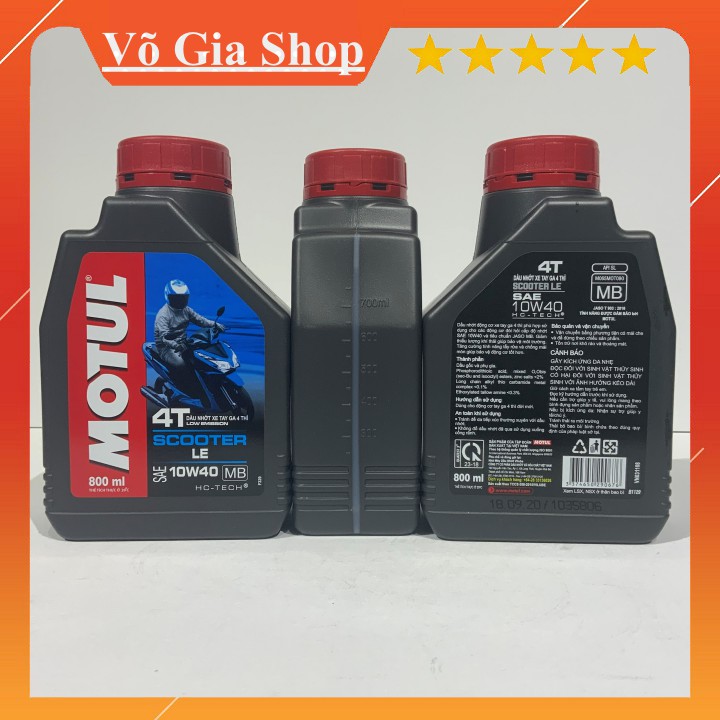 - Motul Scooter LE 10W40 đến từ hãng dầu nhớt Motul danh tiếng tại Pháp, là sản phẩm dầu nhớt đặc biệt dành cho xe tay ga 4 thì đời mới. Motul Scooter LE 10W40 tự hào được nhiều nhà sản xuất xe khuyến cáo nên dùng cho các động cơ xe tay ga mới hiện nay.