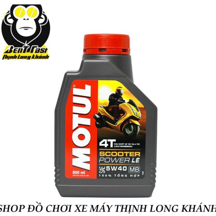 - Motul Scooter Power LE 5W40 0.8L với tính năng duy trì độ bền oxy hóa và giảm hàm lượng muội cặn hình thành, giúp chống ăn mòn và tạo bọt cực tốt.