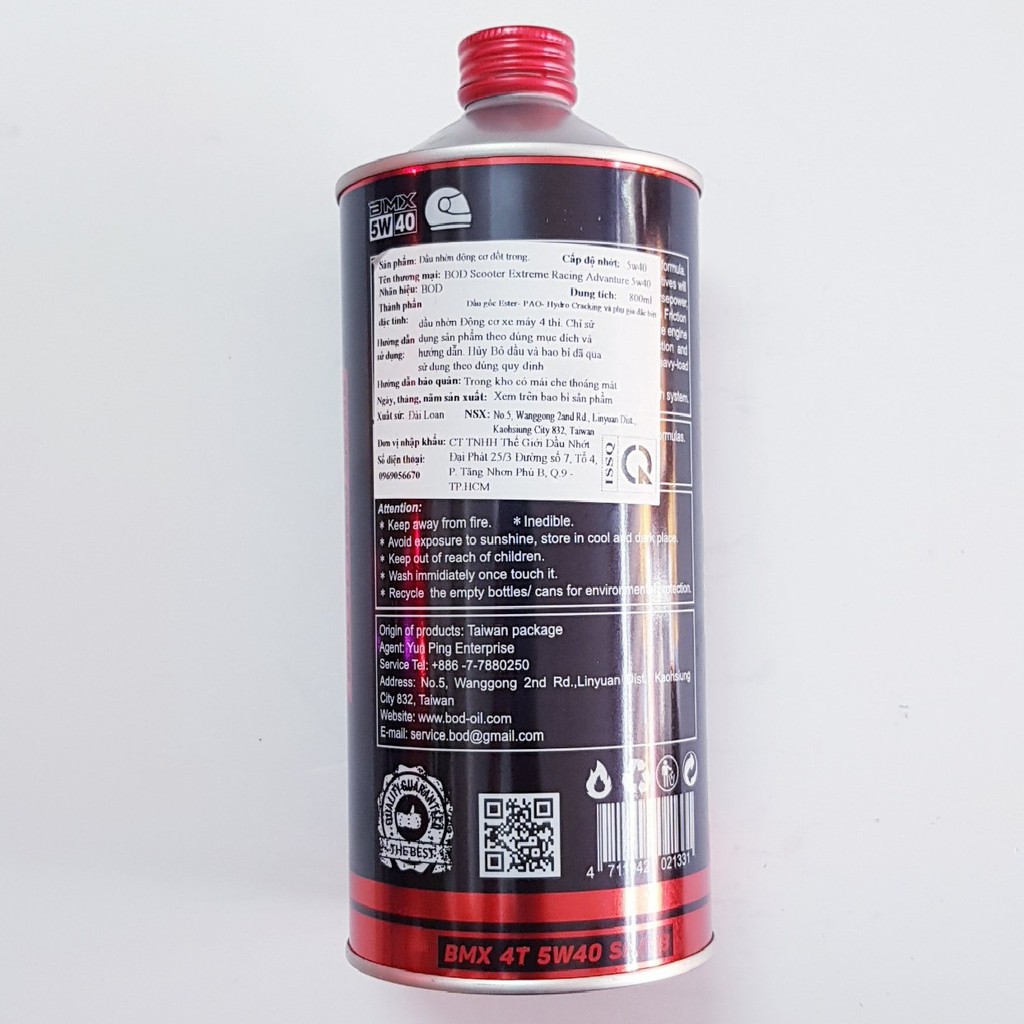 Giới thiệu Nhớt nhập khẩu tổng hợp gốc Ester BOD Racing 5w40 800ml MB Extreme Racing Fully Synthetic