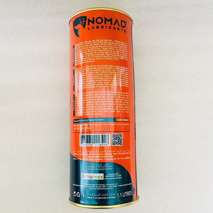 Trên thị trường có rất nhiều dòng nhớt tổng hợp toàn phần phù hợp với các loại xe côn tay hay mô tô. Các thương hiệu nổi tiếng được anh em nhắc đến như là BCP Fully Synthetics của Thái Lan, Motul, Refsol, … Nhưng hầu hết các loại trên đều không có dung tích 1.1L, nên mỗi lần thay nhớt anh em đều phải mua 2 lon để thay, điều này khiến khá nhiều anh em cảm thấy không thoải mái. Một thương hiệu khác đến từ xứ sở dầu mỏ Dubai đó là Nomad, đang là sự lựa chọn hàng đầu của anh em đi xe winner nói chung và côn tay nói riêng. Với dung tích 1.1L vừa đủ để anh em dùng trong một lần thay nhớt