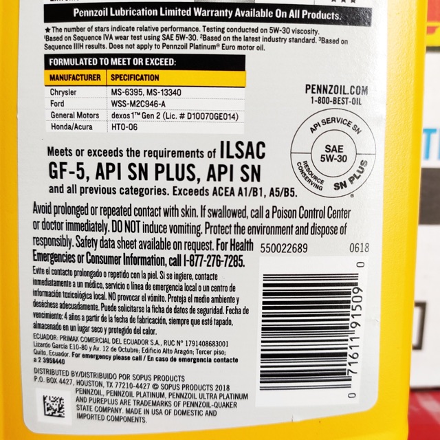 Ô tô > Dầu nhớt và phụ gia ô tô > Mỡ & Chất bôi trơn || Nhớt Pennzoil Platinum 5w30Còn hàng
