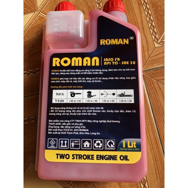 Nhớt pha xăng cho động cơ 2 thì ROMAN (chính hãng)tỉ lệ pha 1:30-1:40 - 1:50