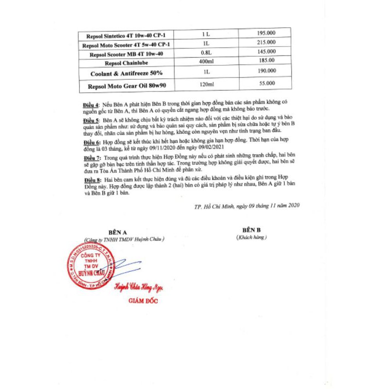 Tính năng của dầu nhớt Repsol Racing 4T 10W40Repsol Racing 4T 10W40 là dầu nhớt tổng hợp cao cấp, giúp bảo vệ động cơ một cách vượt trội và hoạt động tối đa công suất trong điều kiện tốt nhất.