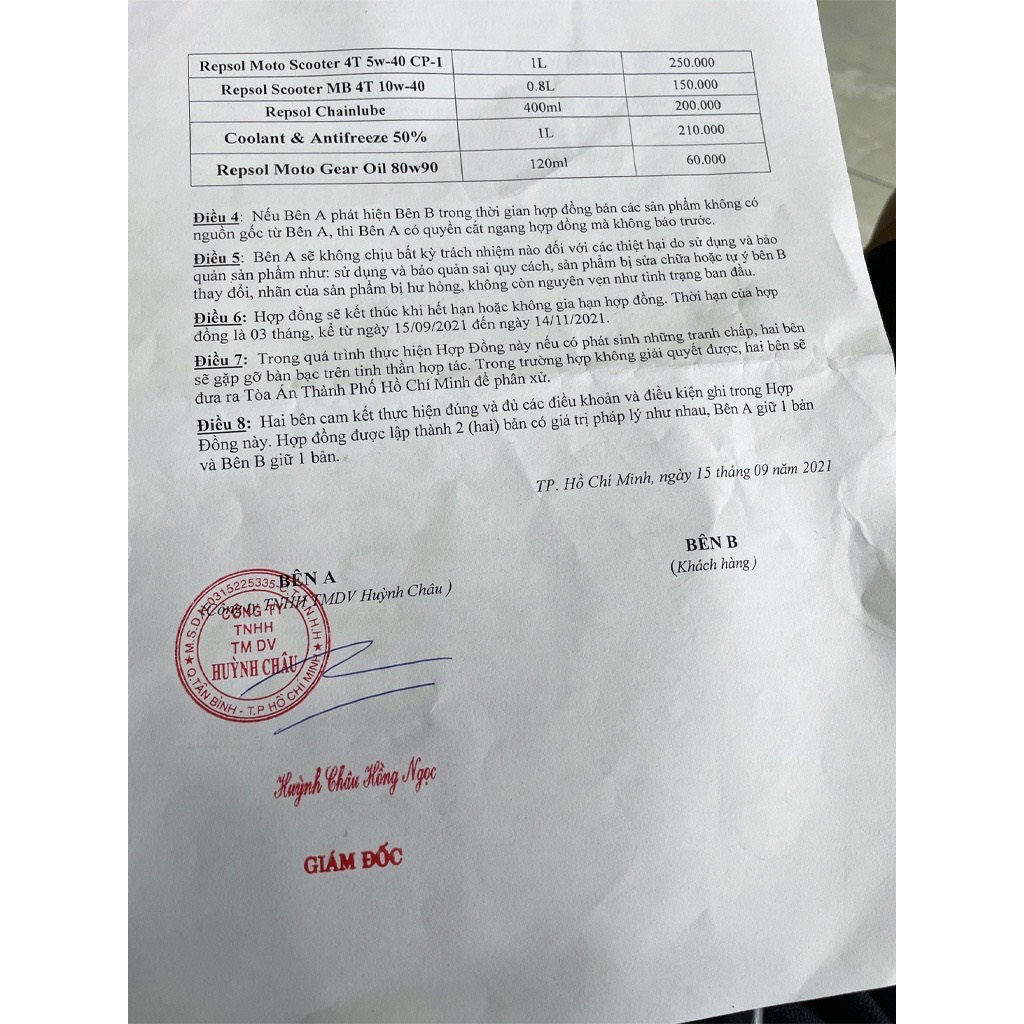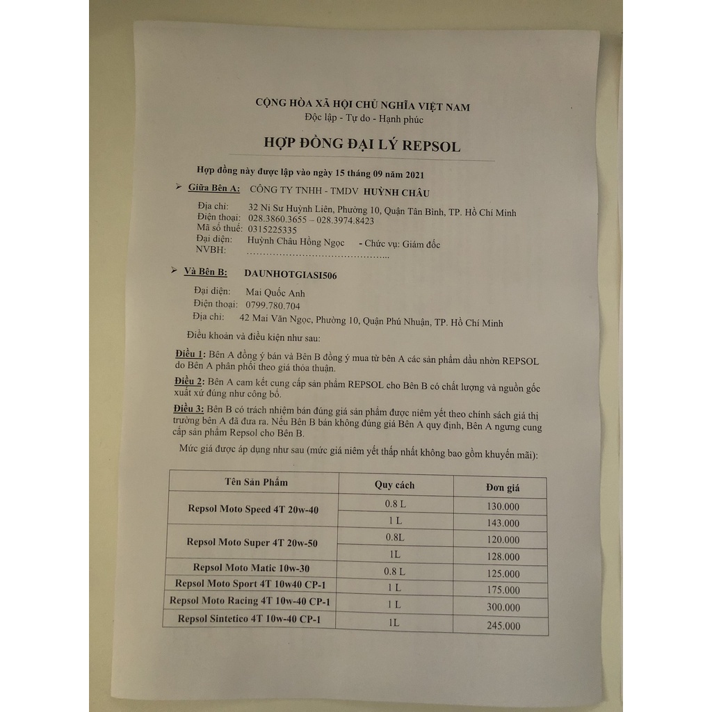 3/ Sản phẩm Repsol Racing do Cty Huỳnh Châu phân phối và kể từ 11-2020.