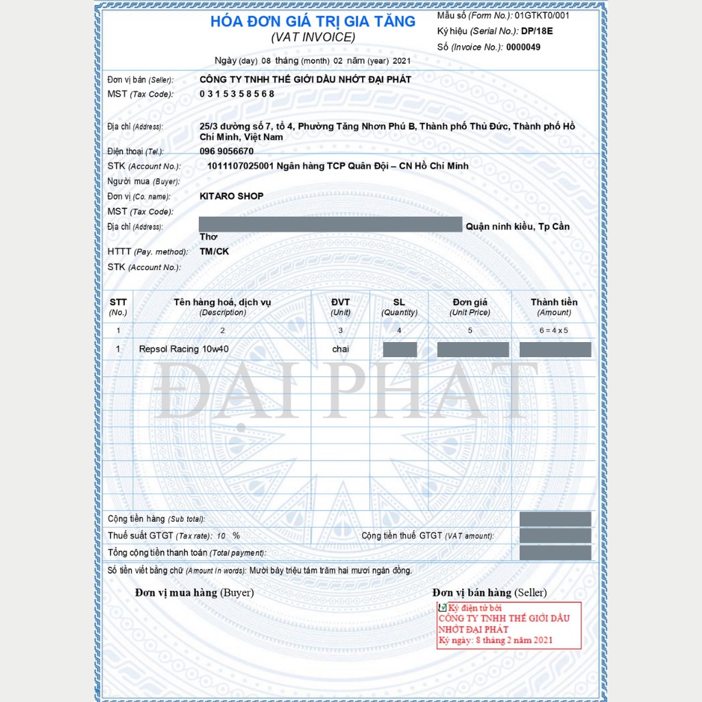 Ô tô > Dầu nhớt và phụ gia ô tô > Mỡ & Chất bôi trơn || Nhớt Repsol Racing 10w40 - Nhớt Tổng Hợp 100%Còn hàng
