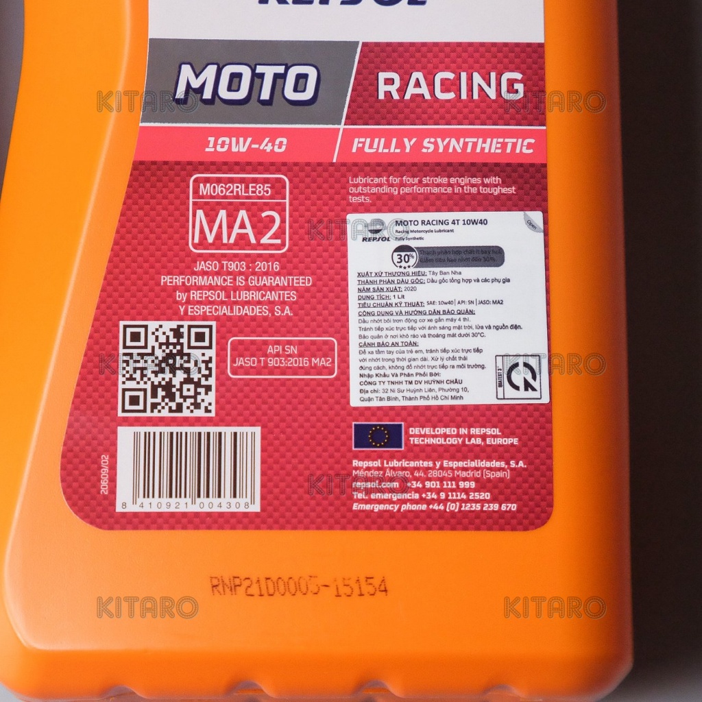 Dầu nhớt Repsol Racing 4T 10W40 được sản xuất đặc biệt với những tiêu chuẩn tân tiến nhất dành cho các dòng xe moto pkl như: Kawasaki Z1000, Yamaha Exciter 150, Exciter 135, Winner 150, Fz150i, FzS, FZ16, Raider 150, AxeloNhớt Repsol Moto Racing 4T 10W40 là một trong những sản phẩm chất lượng, thuộc hãng dầu nhớt Repsol danh tiếng được nhập khẩu chính hãng từ Tây Ban Nha. Đây cũng là thương hiệu nổi tiếng tài trợ cho đội đua REPSOL Honda Racing tại các giải đua quốc tế như MotoGP, với đại sứ thương hiệu là tay đua Marc Marquez và Dani Pedrosa.