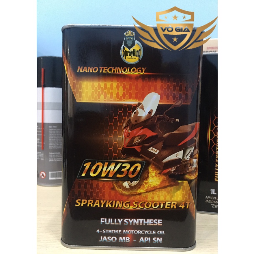 [Mã LIFEAUMAY giảm 10% tối đa 30k đơn 150k] NHỚT SPRAYKING 10W30 SCOOTER 4T 800ml full tong hợp dùng tay ga