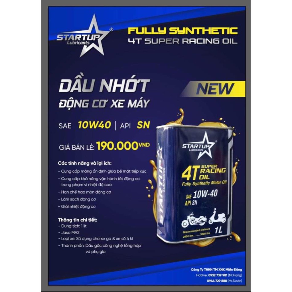 Ô tô > Dầu nhớt và phụ gia ô tô > Mỡ & Chất bôi trơn || NHỚT STARUP 4T SUPER RACING OIL 10W40Còn hàng