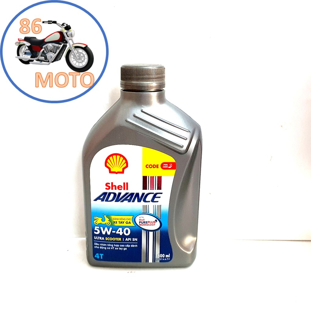 Nhớt 0.8L-1L Shell Advance Ultra Scooter 5W-40, Dầu Nhớt Tay Ga Tổng Hợp 100%, Nhập Khẩu Thái Lan%%%Hàng chính hãng 100%, Hoàn tiền nếu khách không hài lòng%%%