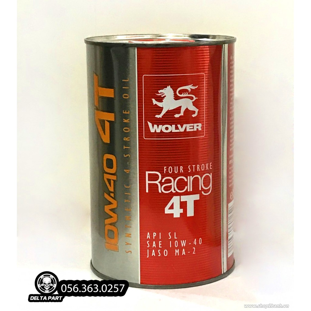 - Nhớt Wolver Racing 4T tổng hợp 10W40 ứng dụng công nghệ tổng hợp hoàn hảo được nhập khẩu từ Đức. với công thức pha chế phụ gia đủ tiêu chuẩn, có thể đáp ứng các yêu cầu kỹ thuật của những thế hệ động cơ đời mới nhất, với tính năng bảo vệ chống mài mòn, chống giảm áp suất dầu và hiện tượng oxy hóa ở nhiệt độ cao.