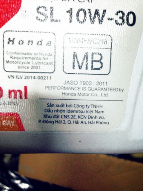 Dầu nhớt cao cấp dành cho xe tay ga thương hiệu IDEMITSU Nhật Bản .Sản phẩm đạt phẩm cấp chất lượng SL/MB 10w 30 . Công ty dầu nhớt IDmitsu chuyên cung cấp cho các hãng sản xuất xe như Honda và YAMAHA nên bạn luôn yên tâm về chất lượng .Bạn nên thay định kì sản phẩm khi xe của bạn vận hành được 2000km để chiếc xe của bạn vận hành êm ái