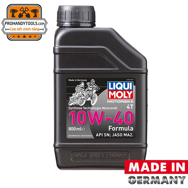 - Nhớt Liqui Moly 4T Synth 10W40 Formula là loại nhớt xe máy cao cấp chuyên dùng cho các dòng xe số, đặc biệt là các dòng xe côn tay, mô tô và xe phân khối lớn hiện nay. Nhớt Liqui Moly 4T Synth 10W40 Formula nổi bật với nhiều tiêu chuẩn dầu nhớt chất lượng, được kiểm định chặt chẽ phù hợp để bảo vệ động cơ xe hoàn hảo nhất.