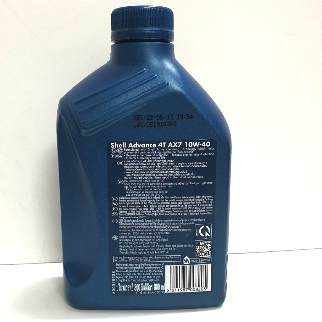 Ô tô > Dầu nhớt và phụ gia ô tô > Mỡ & Chất bôi trơn || Nhớt xe số 0.8L-1L Shell Advance Synthetic Based AX7 4T 10W40 - nhớt xe máyCòn hàng