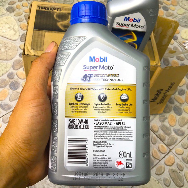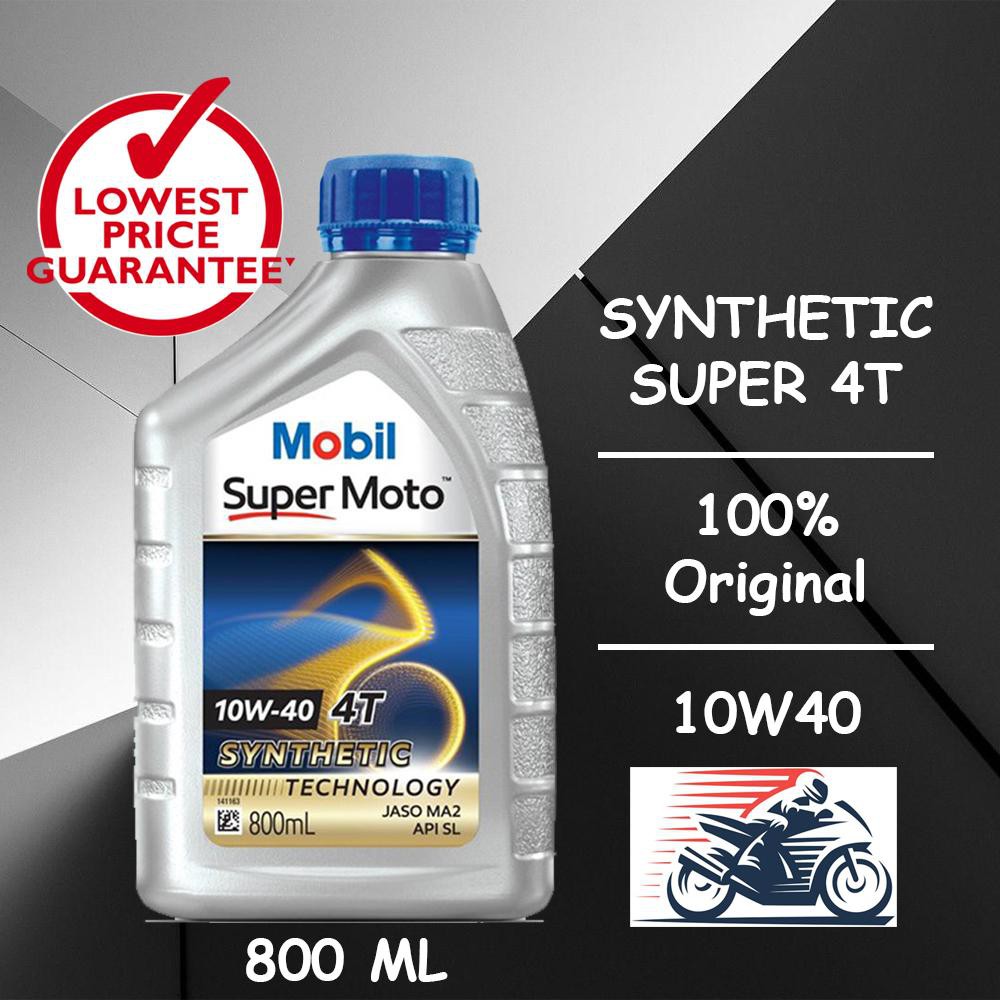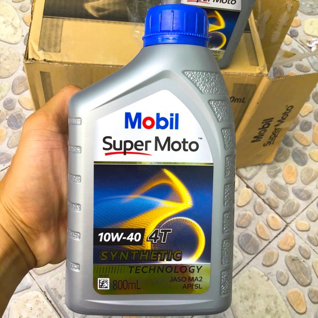 Nhớt Xe số cao cấp MOBIL SUPER MOTO 10W-40 4T 800mlDầu nhớt xe gắn máy Công Nghệ Bán Tổng Hợp Cao Cấp Super Moto 10W-40 4AT Synthetic Technology JASO MA2, API SL, 800ML