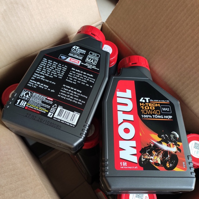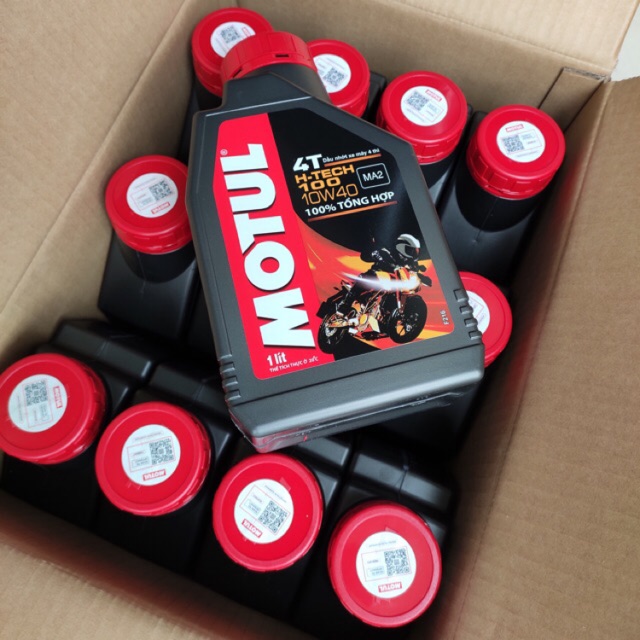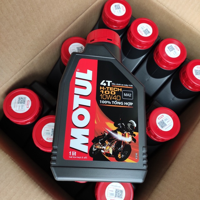 Motul H-Tech 100 4T 10W40 Sản phẩm mới có tem check QR, khách lấy mẫu cũ inbox giùm mình nhé.Motul H-Tech 100 4T 10W40 là sản phẩm dầu nhớt chính hãng dành cho xe máy động cơ 4 thì của tập đoàn Motul – nhà sản xuất dầu nhớt hàng đầu của Pháp. Motul H-Tech 100 4T 10W40 đã được nhiều hãng xe máy uy tín tín nhiệm và khuyên dùng trong thời gian qua, chứng tỏ khả năng vượt trội của sản phẩm dầu nhớt này đối với phương tiện đi lại tại nước ta, không chỉ bôi trơn động cơ giúp xe vận hành êm ái mà còn bảo vệ chiếc xe máy của bạn bền bỉ theo thời gian.