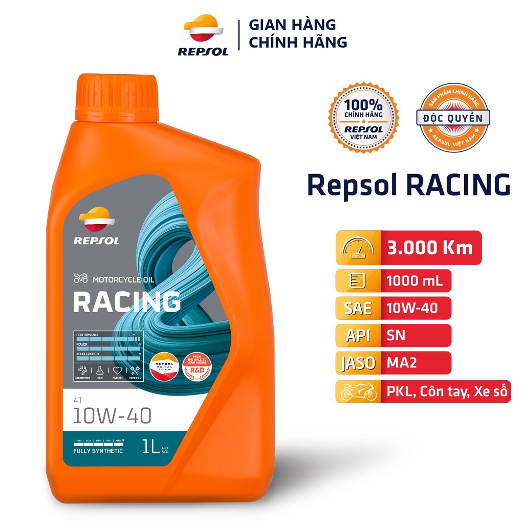 Dầu nhớt Repsol Racing 4T 10W40 được sản xuất đặc biệt với những tiêu chuẩn tân tiến nhất dành cho các dòng xe moto PKL: Kawasaki Z1000, Yamaha Exciter 150, Exciter 135, Winner 150, Fz150i, FzS, FZ16, Raider 150, Axelo…