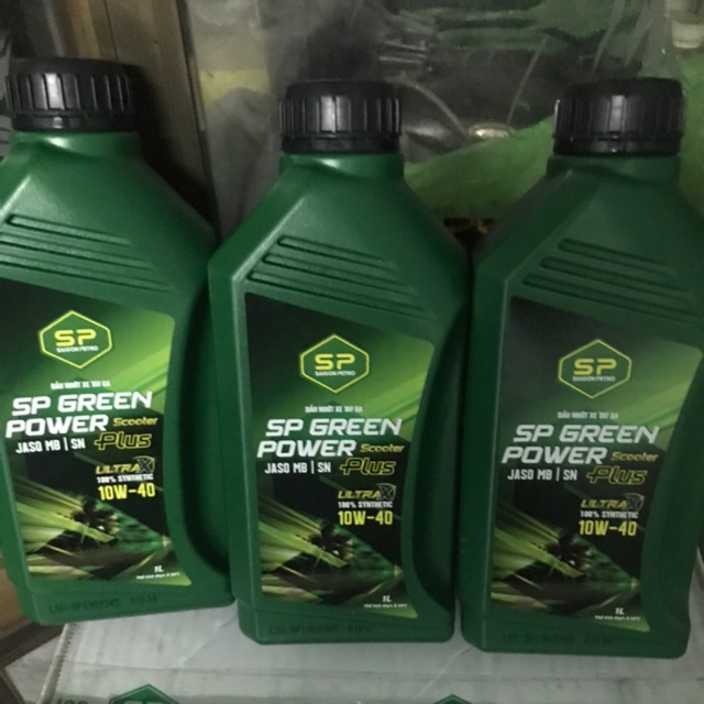 Ô tô > Dầu nhớt và phụ gia ô tô > Mỡ & Chất bôi trơn || Nhớt xe tay ga 1 lít sp Sài Gòn petro green power ultra plus 10w-40Còn hàng