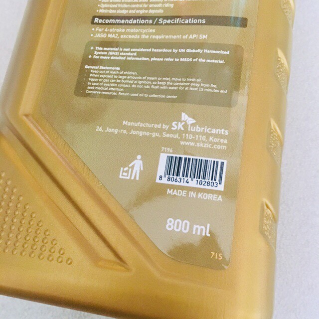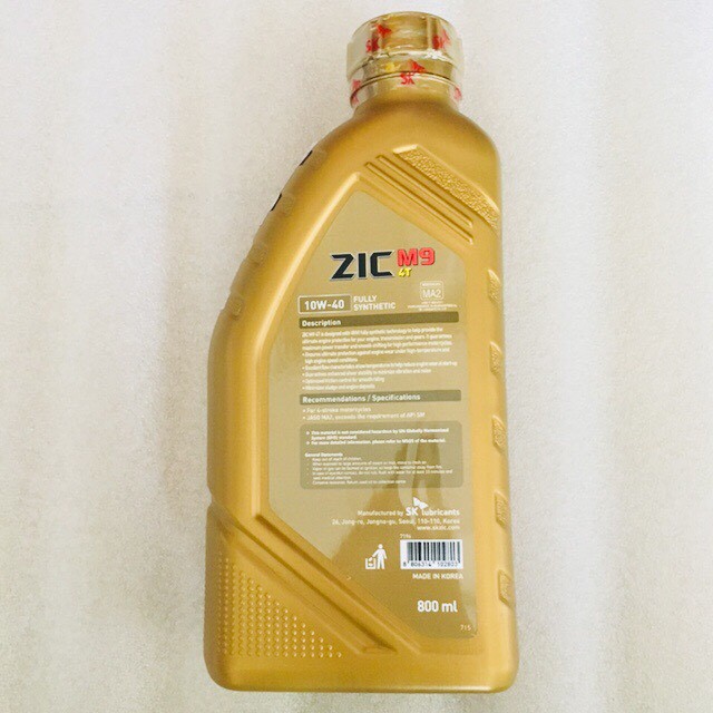 ZIC M9 4T 10W40 800ML Nhớt chất lượng tuyệt đỉnh cho xe mô tô phân khối lớnZIC M9 4T 10W40 800ML được biết đến là sản phẩm nhớt chính hãng chất lượng của tập đoàn dầu nhớt SK Hàn Quốc và đánh dấu sự vươn tầm vượt trội của hãng đối với thị trường nhớt xe máy. ZIC M9 4T 10W40 800ML được tập đoàn nhớt SK thiết kế đặc biệt cho các loại xe mô tô phân khối lớn, xe đua và xe thể thao, dựa trên sự hợp tác và nghiên cứu kĩ thuật cùng với các đội đua xe mô tô danh tiếng hàng đầu trên thế giới