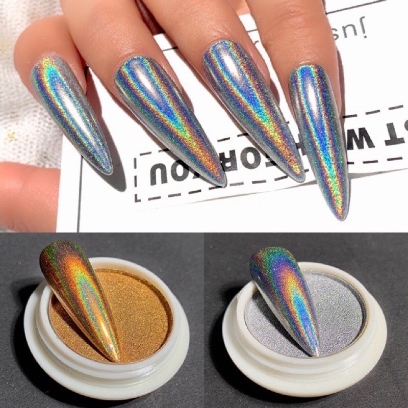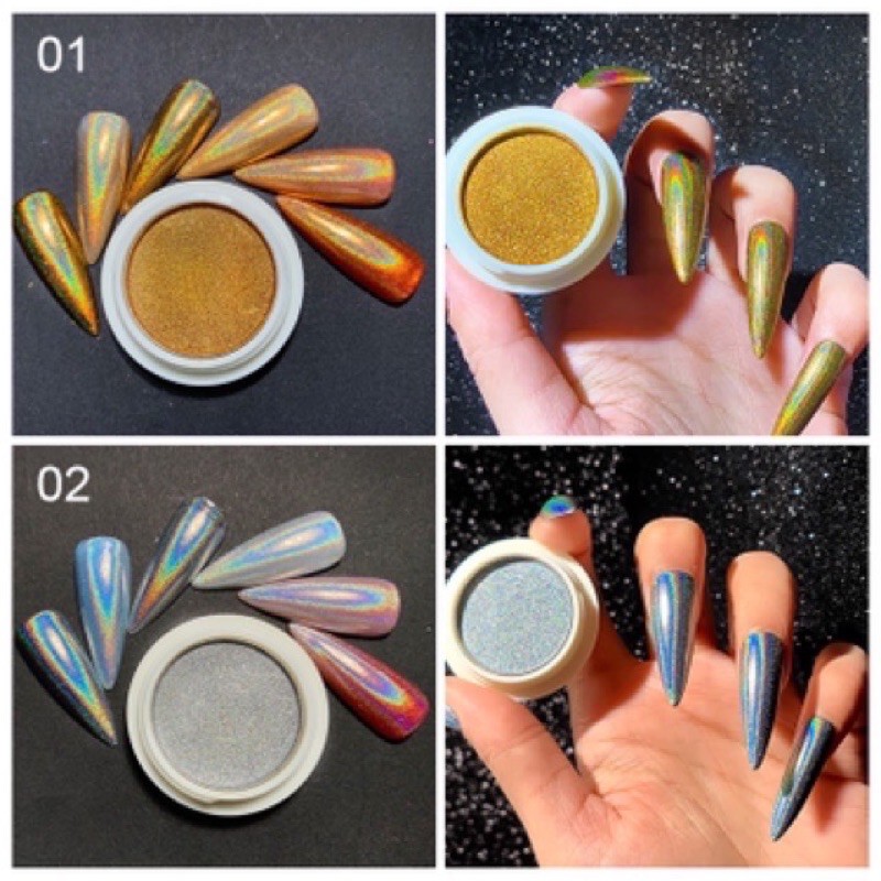 nhũ trắng gương cầu vồng 2 màu vàng bạc