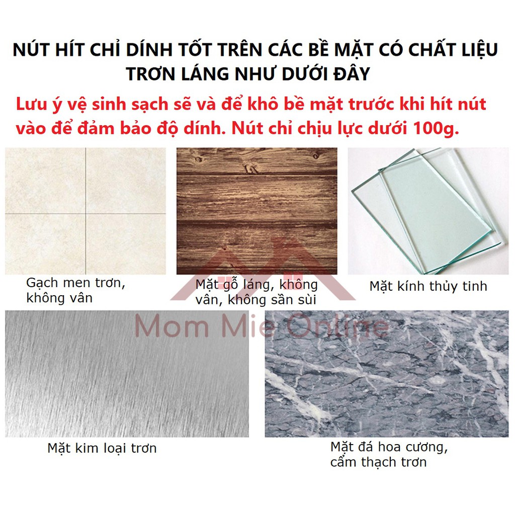 - Phía sau có 2 chân hít chân không hít tốt trên các bề mặt trơn láng (kính, gỗ láng, gạch men láng). Dễ dàng tháo lắp, di chuyển vị trí. Nút có thể tháo ra để vệ sinh.
