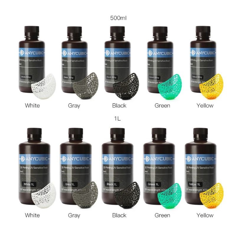 Lưu ý: Hãng Anycubic có thể gửi các màu nhựa resin trong chai màu nâu hoặc chai màu đen tùy theo lô hàng shop nhập. Màu sắc nhựa và màu chai không nhất thiết phải trùng lặp như trên.