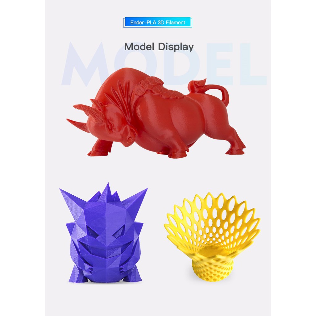 Nhựa in 3d Ender- PLA có độ bền kéo và độ dẻo tốt hơn. Tính lưu động mượt mà hơn giúp việc in ấn dễ dàng hơn mà không cần bàn nhiệt cho kết quả tốt .