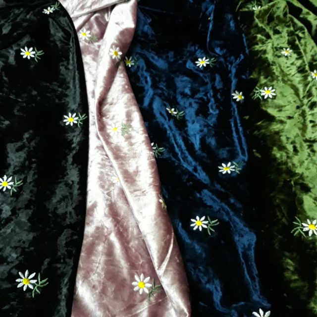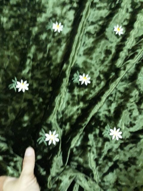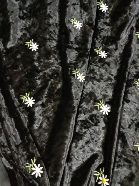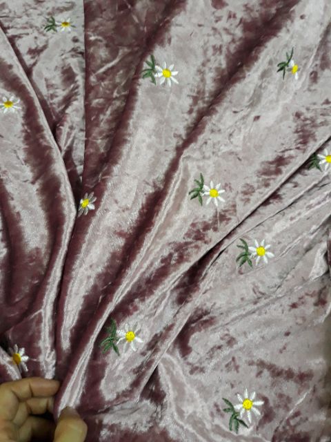 Vải nhung thêu cao cấp, từng bông hoa được thêu nổi trên nền nhungChất nhung đẹp, không bung tuyết đâu ạ