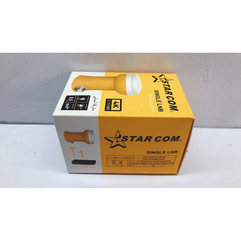 LNB là viết tắt của Low noise block downconverter: là bộ chuyển đổi tần số sóng vệ tinh từ cao xuống thấp hơn IF (trung tần 950 – 2150MHz ), có tần số dao động nội LO (Local Oscilator Frequency ) riêng. Đồng thời khuếch đại nhiễu thấp tín hiệu trung tần để chuyền đi trong cáp đồng trục 75Ω. LNB được đặt tại điểm hội tụ sóng của chảo. Hay nói cách khác đây là bộ thu tín hiểu sóng vệ tinh và chuyển đổi nó thành sóng trung tần IF (intermediate Frequency) để chuyền đi trong cáp đồng trục tới đầu thu giải mã sóng vệ tinh. LNB starcom thích hợp với mọi loại đầu thu vệ tinh, là thiết bị đã được thị trường chấp nhận và phân phối toàn quốc