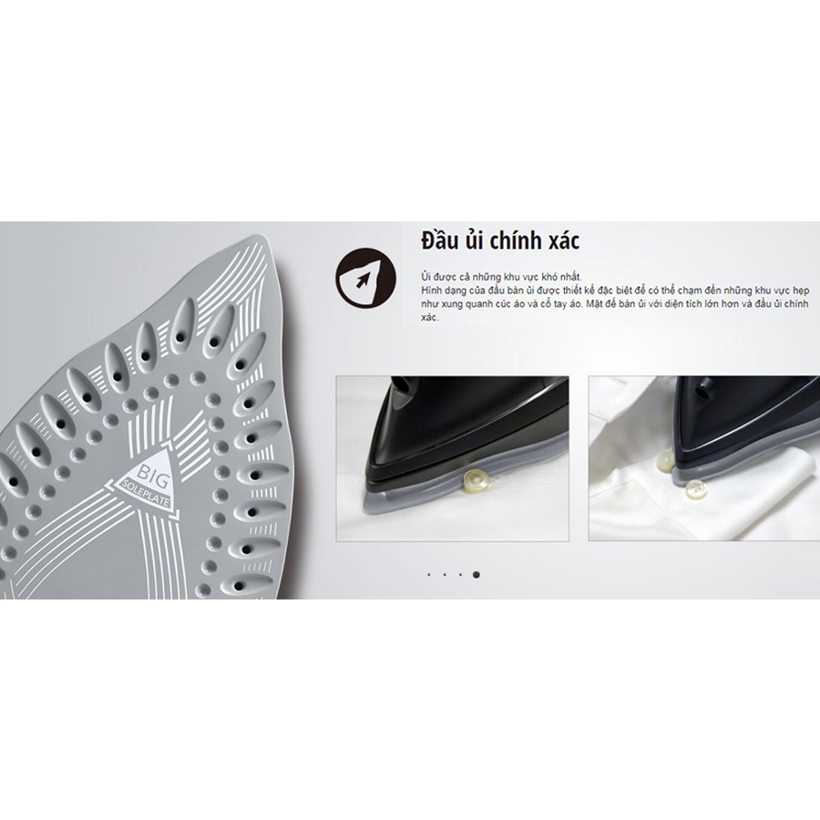 - Mặt ủi được thiết kế có diện tích lớn giúp tiết kiệm thời gian ủi hơn