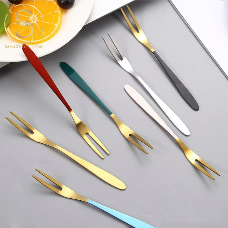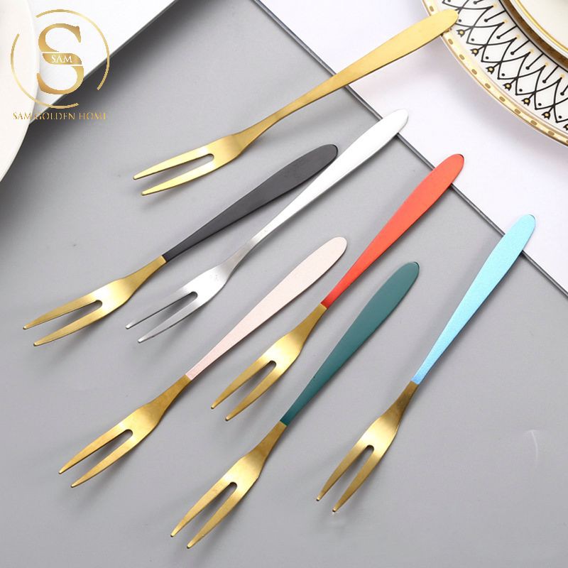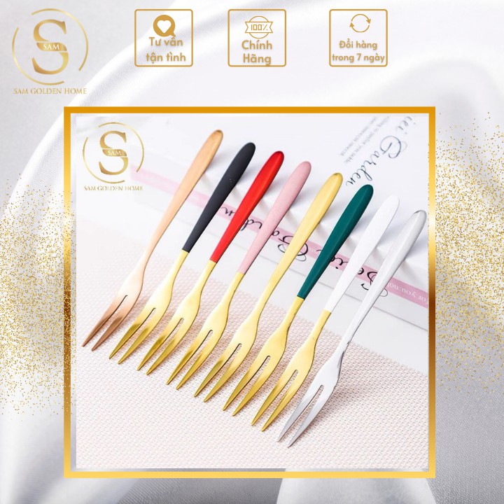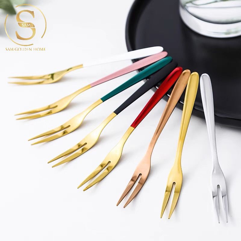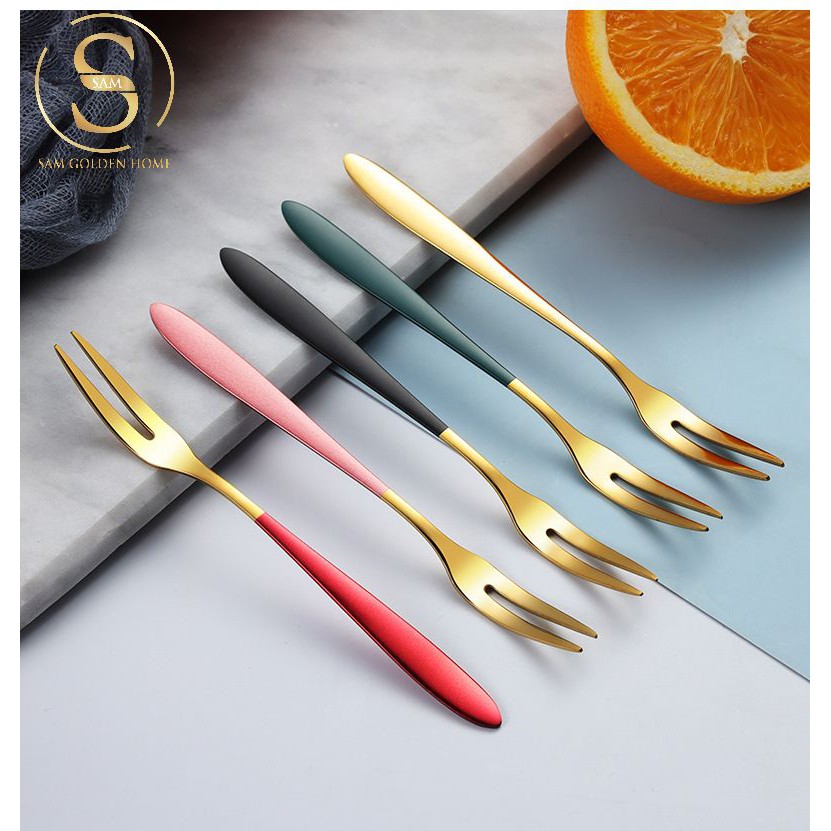 CỬA HÀNG NỘI THẤT CAO CẤP SAM GOLDEN HOME DECORNĩa Ăn Trái Cây Inox 304 Không Gỉ Cao Cấp Vàng Gold Cán Có Màu Sang Trọng Tinh Tế