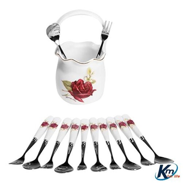 Nhà cửa & Đời sống > Bộ đồ bàn ăn > Bộ dao kéo || Nĩa, muỗng, dao inox cán sứ cao cấp - spoon snail forkCòn hàng