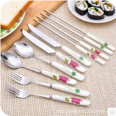 Nĩa, muỗng, dao inox cán sứ cao cấp - spoon snail fork