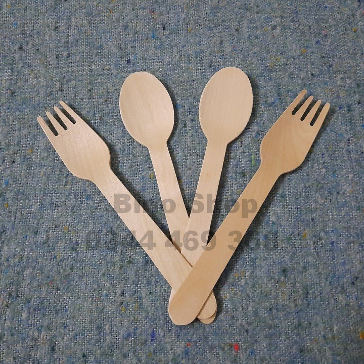 - Bịch 10 nĩa + 10 muỗng gỗ.